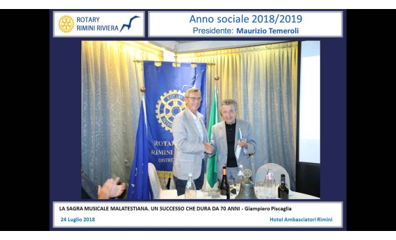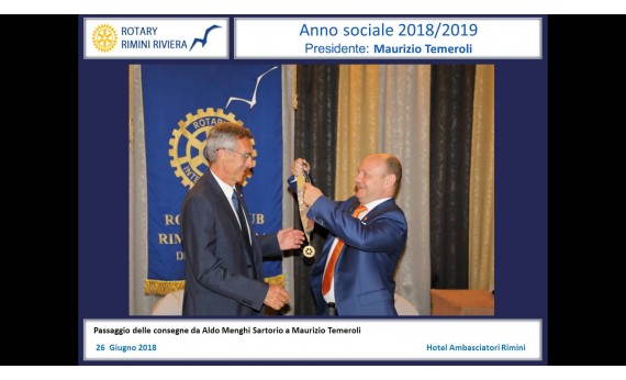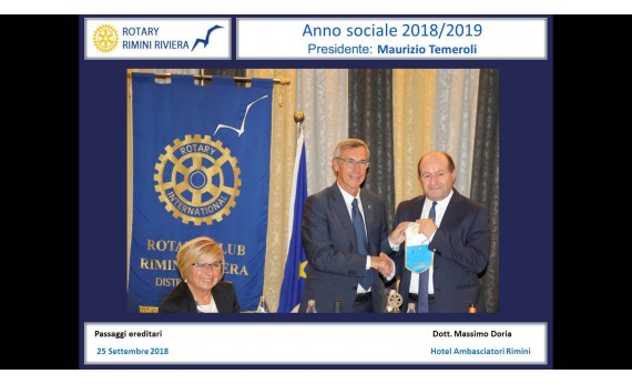 Passaggio delle consegne ieri sera al Rotary Rimini Riviera. Da Aldo Menghi Sartorio, la...